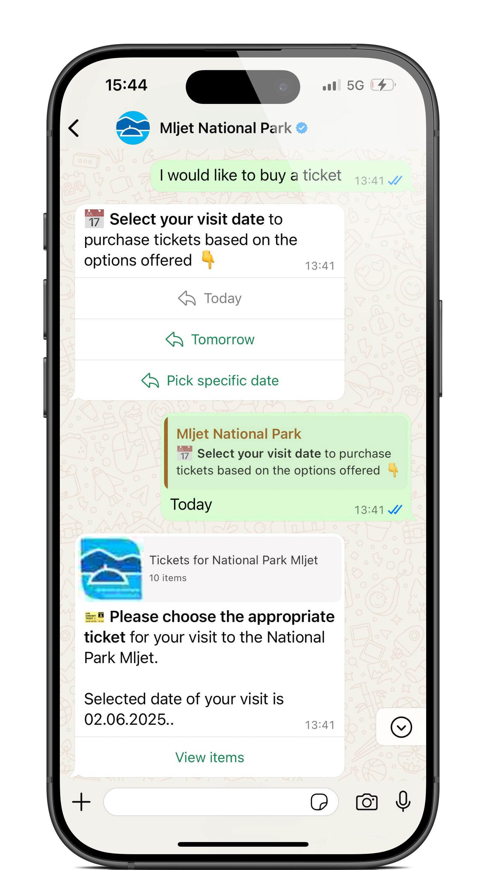 Pristup katalogu ulaznica za odgovarajući datum direktno unutar WhatsAppa